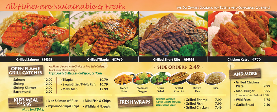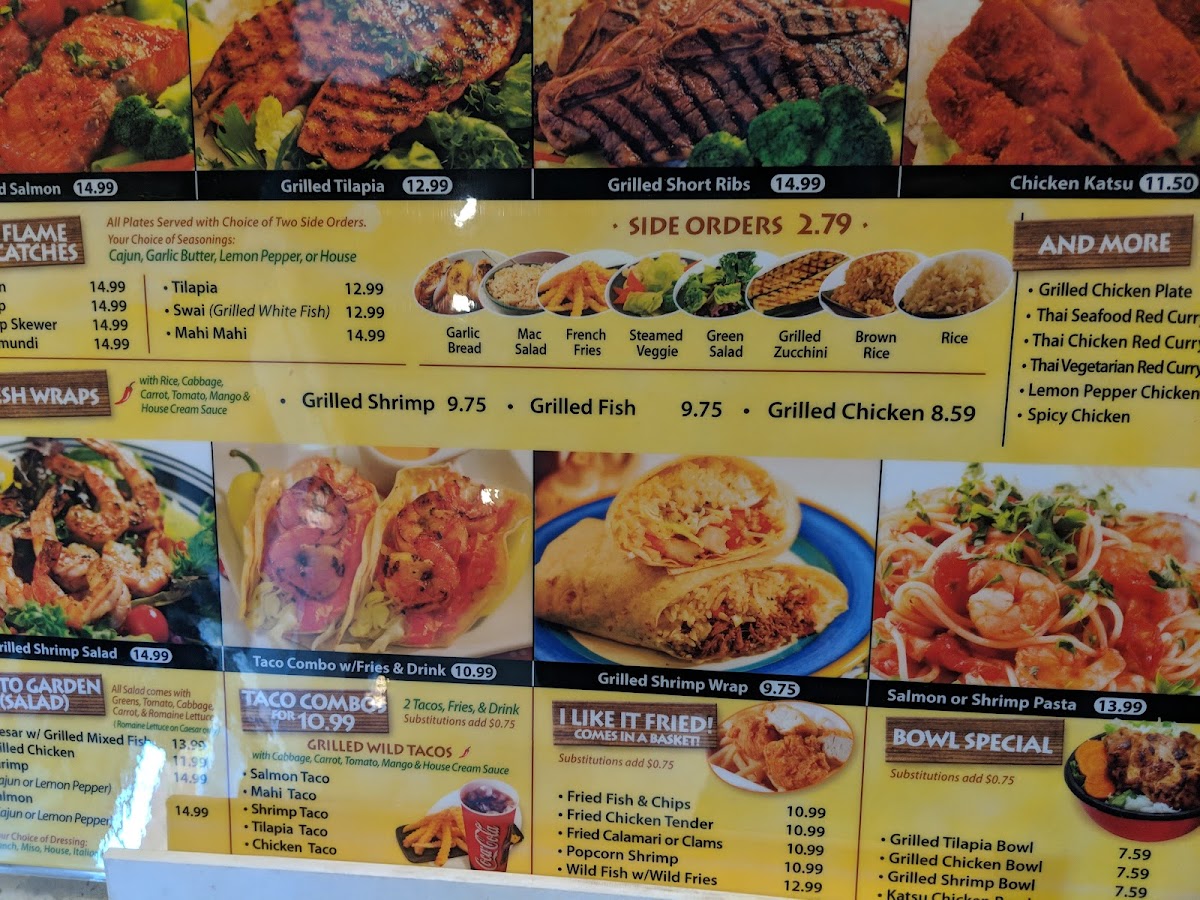 Grilled mahi mahi served with choice of two side orders and choice of seasoning